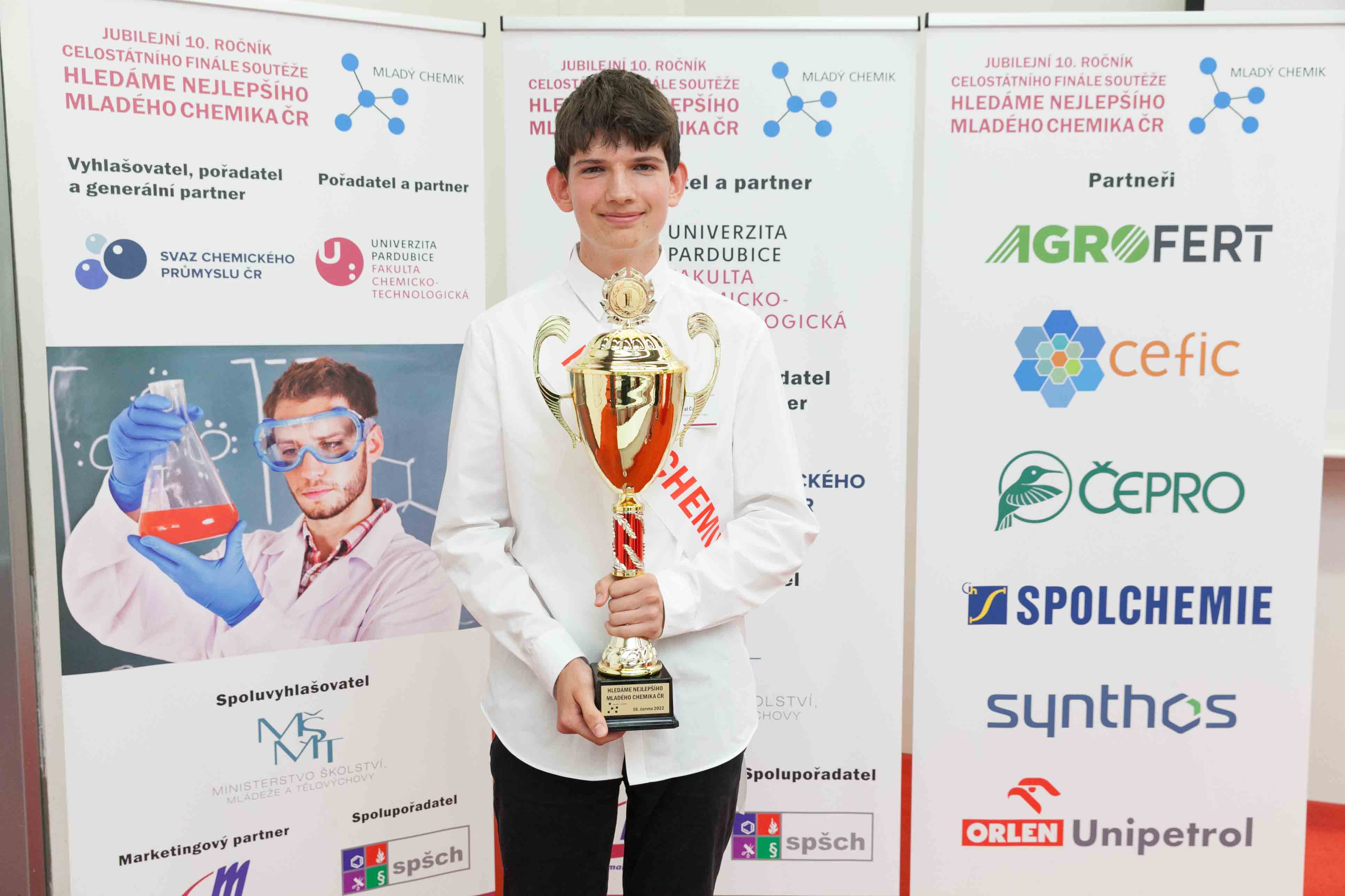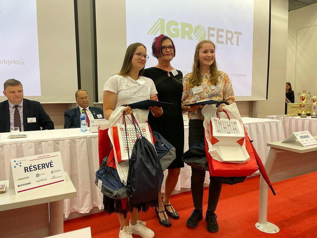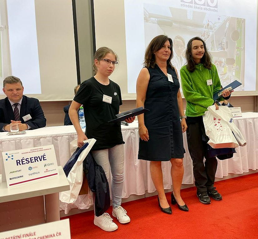Ve čtvrtek 16. června se v prostorách Fakulty chemicko-technologické Univerzity Pardubice uskutečnilo žákovské mistrovství republiky v chemii. Oceněno bylo všech 38 finalistů celostátního finále, kteří postoupili z krajských kol. Ceny ji mezi jinými předaly Jaroslava Doležalová, personální manažerka koncernu AGROFERT, Olga Marečková, personální ředitelka společnosti Synthesia, a Alena Okáčová, vedoucí personalistiky společnosti Precheza. Velmi nás těší, že jsme mohli být u toho jak před 10 lety, tak i nyní.